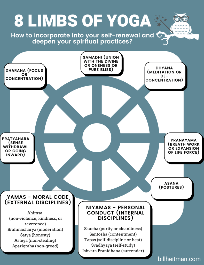 This is a graphic I created for my friends that took part in our Mastermind discussion around the 8 Limbs of Yoga.